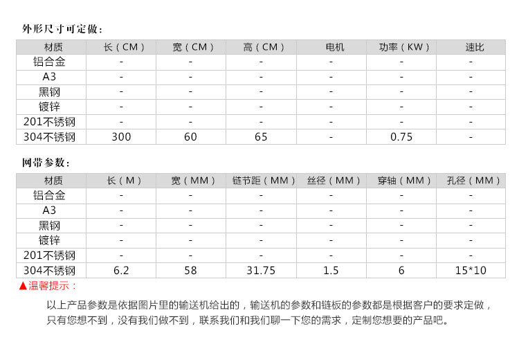 輸送機材質:有A3低碳鋼、201不銹鋼、304不銹鋼等。